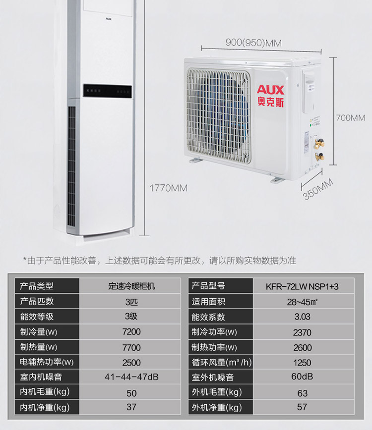 定频3匹立式冷暖柜机空调