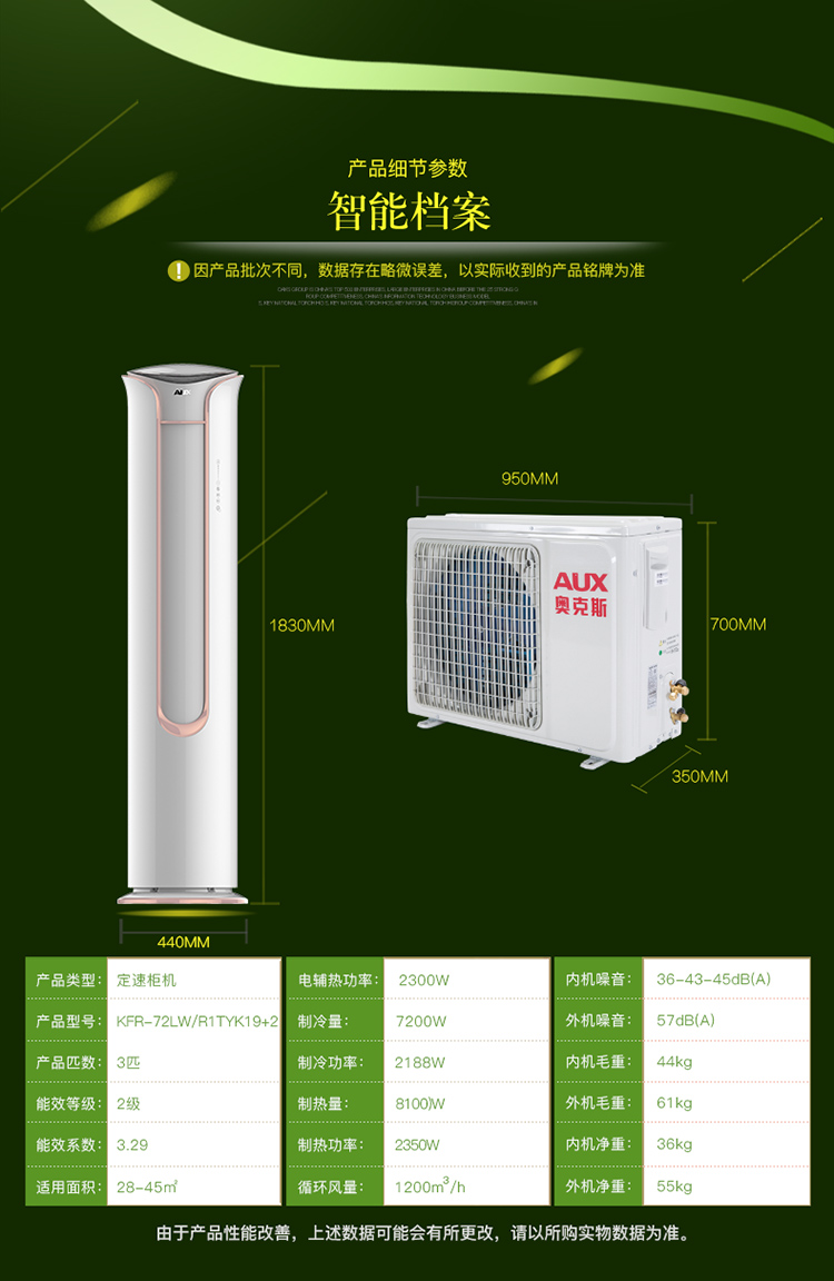定频3匹立式冷暖柜机空调